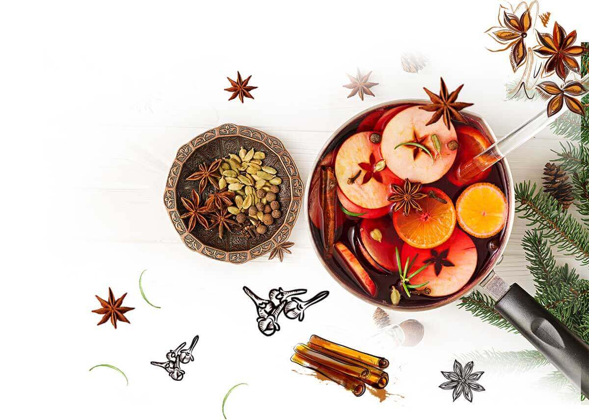 Данный состав подходит для приготовления безалкогольного глинтвейна, если вместо вина использовать сок темных сортов винограда или гранатовый сок.